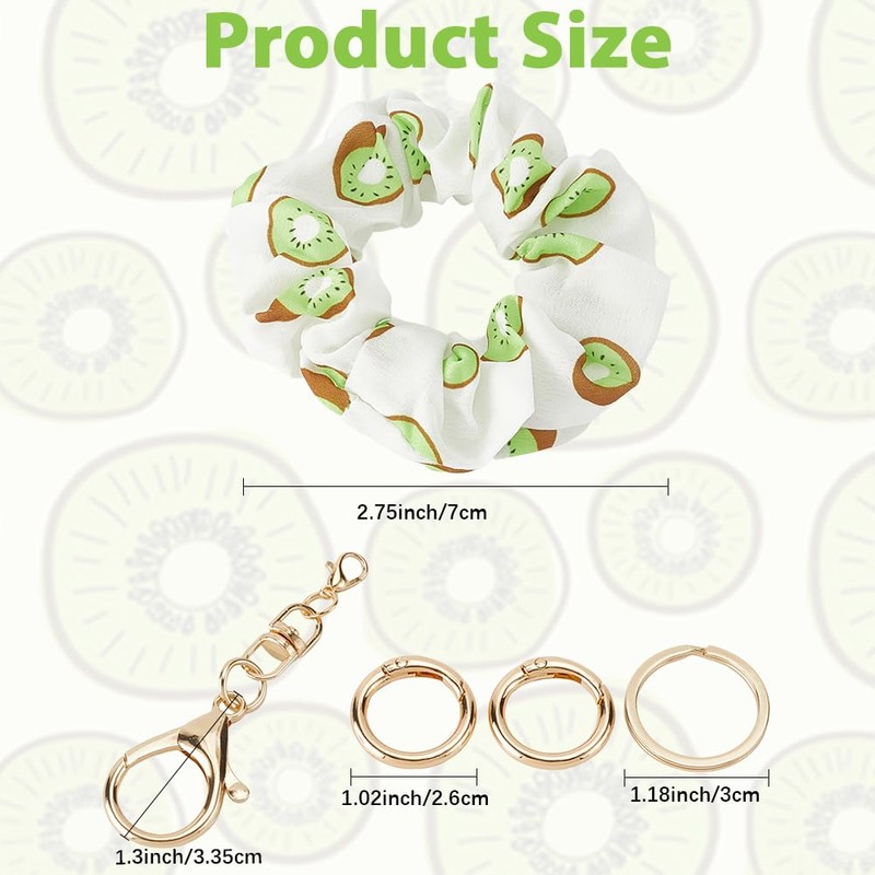 CREATCABIN Fabric Bracelet Key Ring Hair Scrunchie Key Ring Kiwi Fruit Key Bracelet Elastic Hair Band Bracelet Spring Buckle Key Ring for Women Key Ring Decoration 7.35 cm