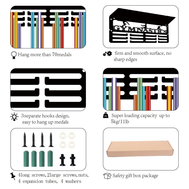 - [BEST GIFT]: The medal hanger can be used to hang medals and display the honors and praise of athletes. The medal holder not just a wall decoration but a gift for family and friends. Receiving the medal holder on Christmas, Halloween, Valentine's Day and birthday represents the greatest pride and pride. (Design products, with patent copyright)