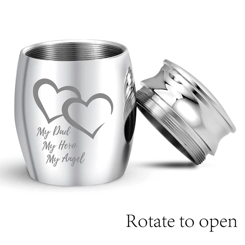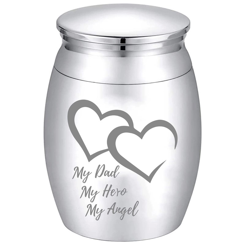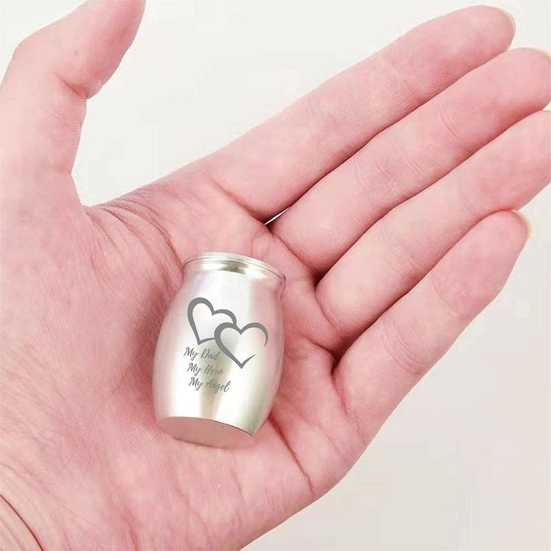 CREATCABIN Small Keepsake Urn Mini Urn for Ashes Heart Miniature Funeral Funeral Container Mason Jar Engraved Stainless Steel for Family Memorial Silver 40x30mm - My Father My Hero My Angel