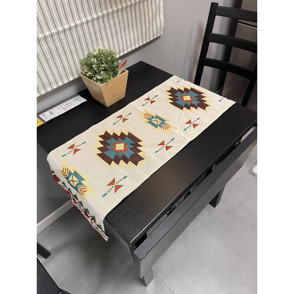 "Create a Stylish Camping Scene" Ortega Design Table Runner, Camping Outdoor, Native Pattern, Lunch Mat, Table Mat, Table Mat, Cafe, Tent, 13.8 x 47.2 inches (35 x 120 cm)