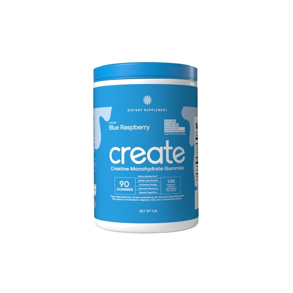 Create Creatine Monohydrate Gummies for Men & Women, Boost Focus, Strength, and Endurance, Anti-Melting Formula, Vegan, Gluten-Free, Non-GMO, 1.5g of Creatine per Gummy (Blue Raspberry, 90 ct)