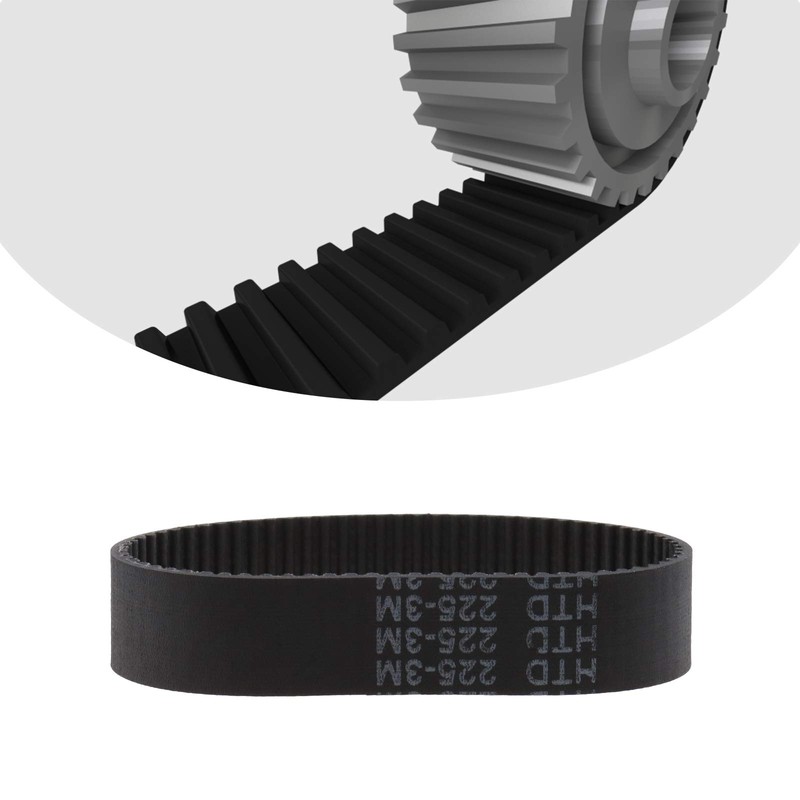 - Closed rubber drive belt with 75 teeth and 3 mm pitch, 17 mm wide, 225 mm circumference.
