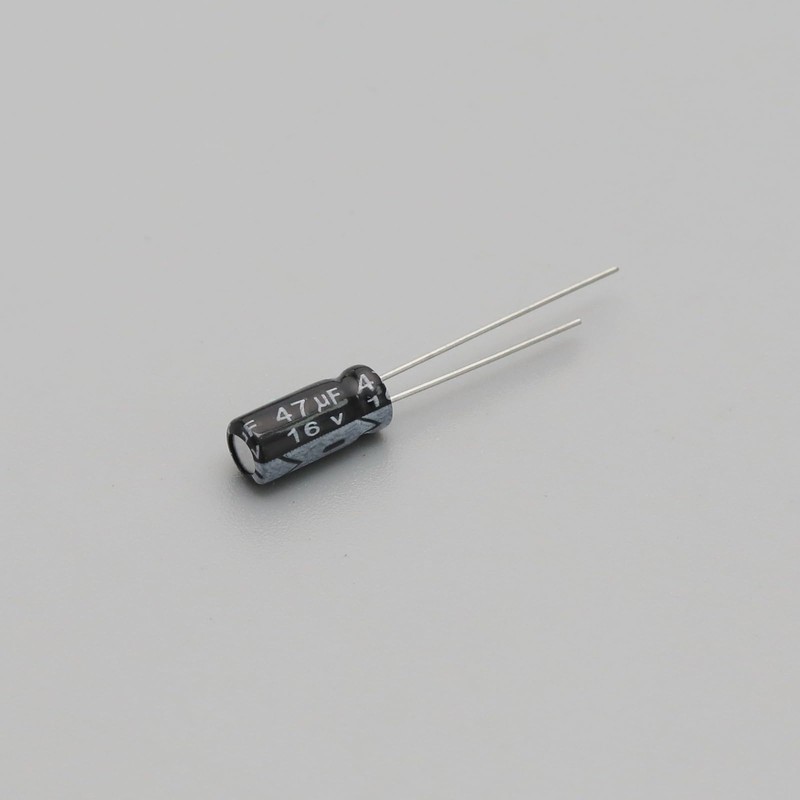-47uf 16v electrolytic capacitor; size 5mm Diameter x 11mm Length; aluminum electrolytic capacitor, high frequency, low resistance, low ESR ±20%