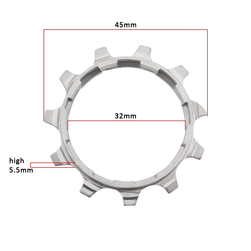 - [10 velocidades 11T] Con un recuento de 11 dientes, diámetro interior de 32 mm y diámetro exterior de 45 mm, optimiza la eficiencia del ciclismo, asegurando transiciones de engranajes suaves.