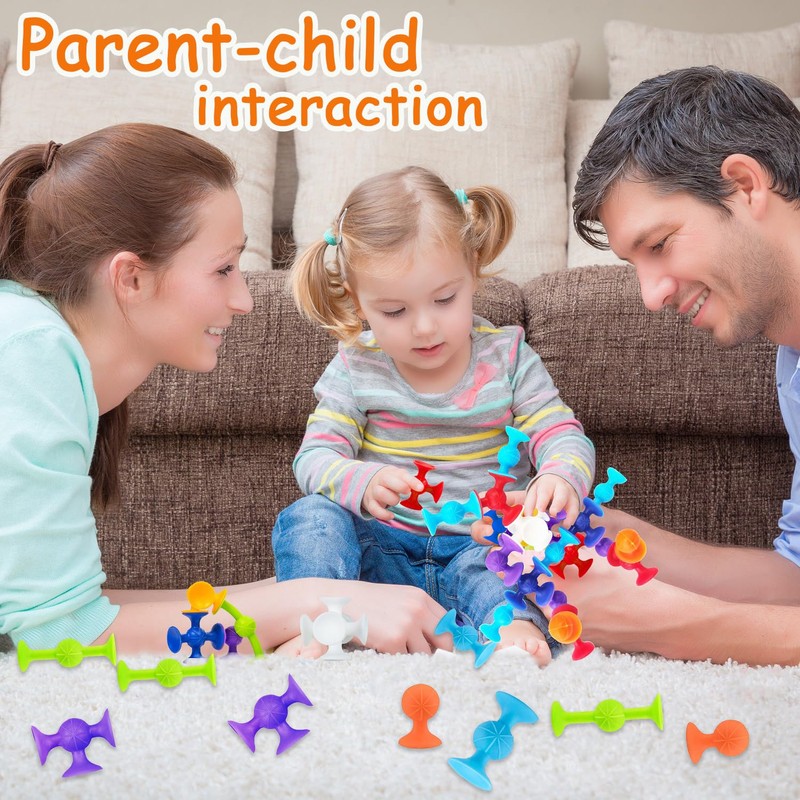 - đă Suction Cup Toys for Baby ă48PCS building stacking sucker toy is of great enlightenment toy for kids. It can be transformed into various shapes such as numbers, geometric figures & objects, to help children learn numbers and recognize shapes. NOT FOR TEETHING!