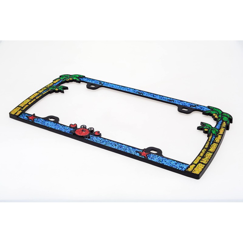 Creathome 3D Shining Palm Trees Crab License Plate Frame from Pure Zinc Alloy Metal Perfect Plate Holder, Matt Black with Colorful Glitters