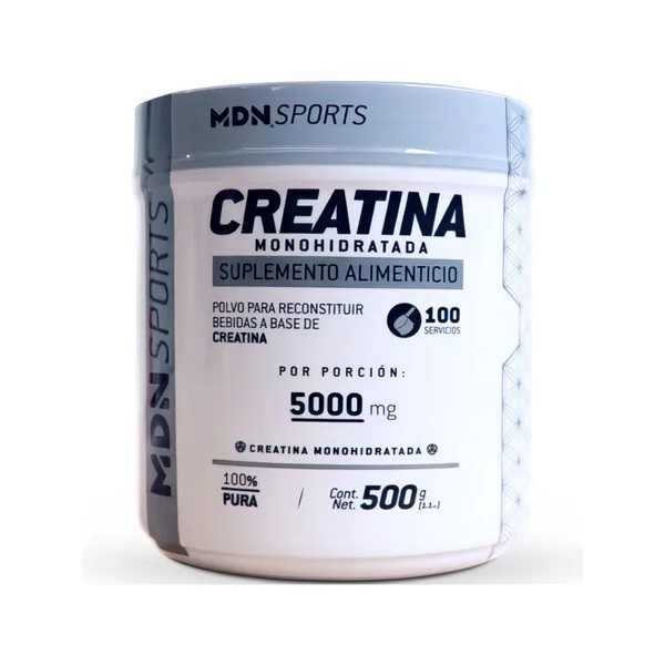 Creatina Monohidratada 100% Pura 500g MDN Sports 100 servicios Sin rellenos, Sin Sabor.