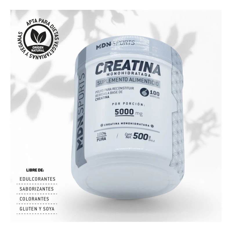 Creatina Monohidratada 100% Pura 500g MDN Sports 100 servicios Sin rellenos, Sin Sabor.