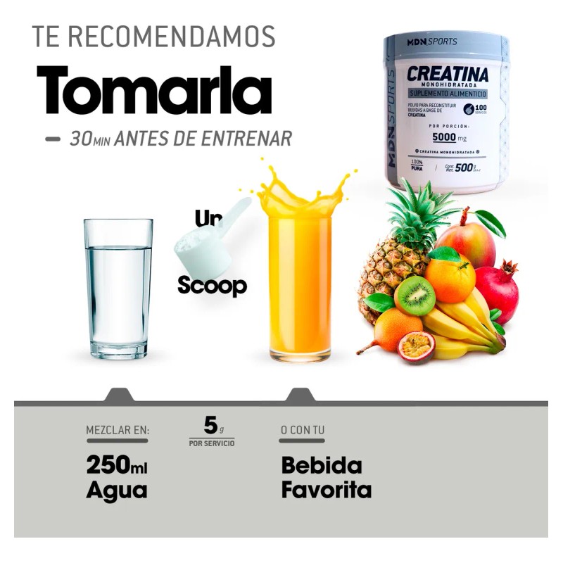 Creatina Monohidratada 100% Pura 500g MDN Sports 100 servicios Sin rellenos, Sin Sabor.