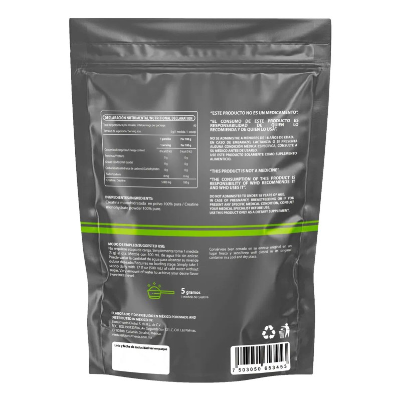 Creatina Monohidratada 450 Gr Wellthy 90 Porciones Sabor Sin Sabor