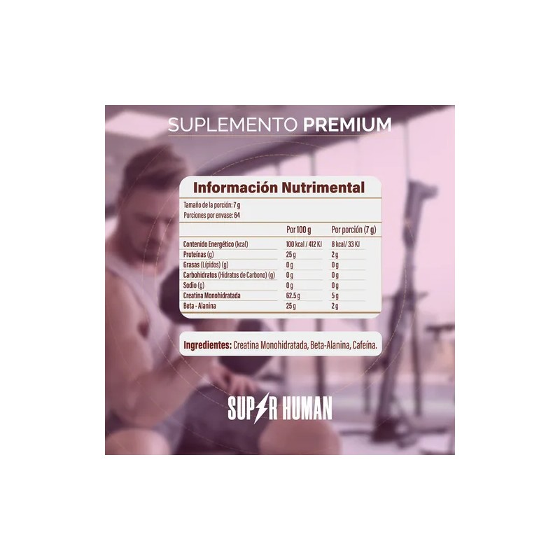 CREATINA MONOHIDRATADA + BETA ALANINA - SUPR HUMAN - 450g