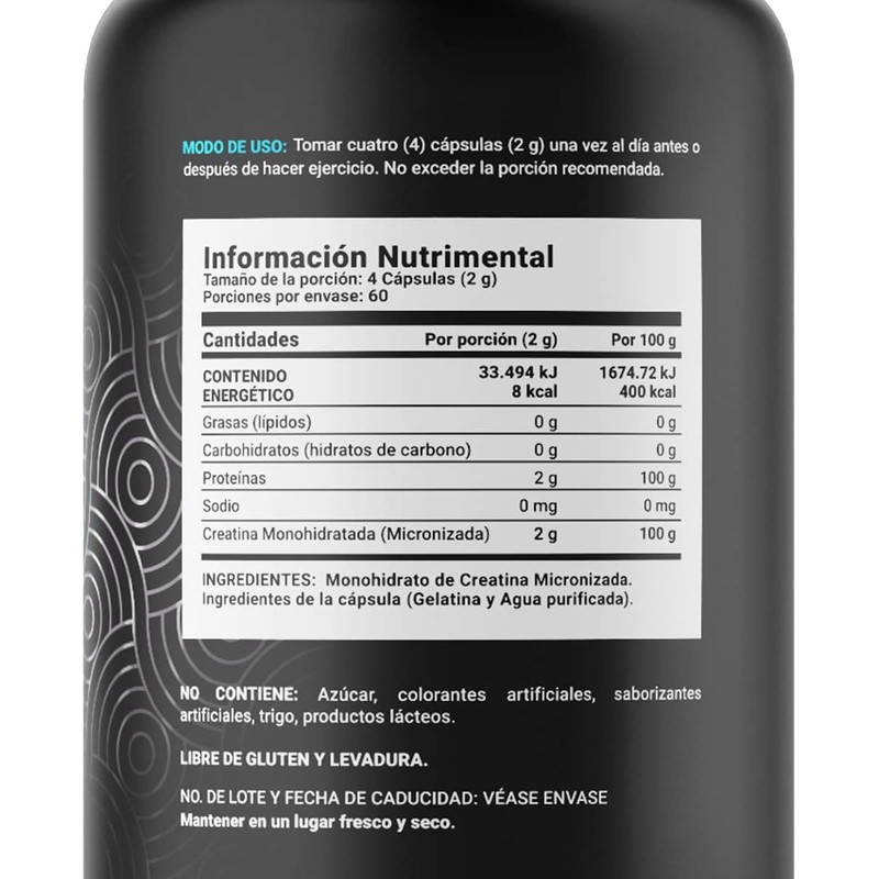 Creatina Monohidratada Micronizada. 240 Cápsulas. 120 Gramos. Alta Pureza Sin Sabor. Ingredientes naturales. Creatine Monohydrate B Life.