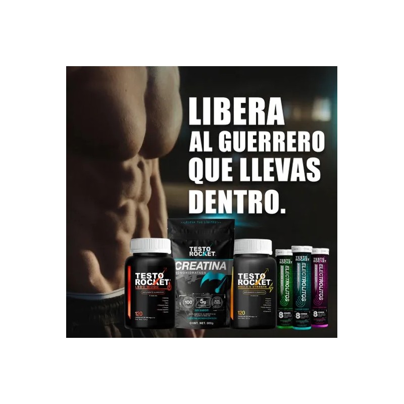 Creatina monohidratada micronizada 500g sin sabor Testo Rocket pre workout cr...