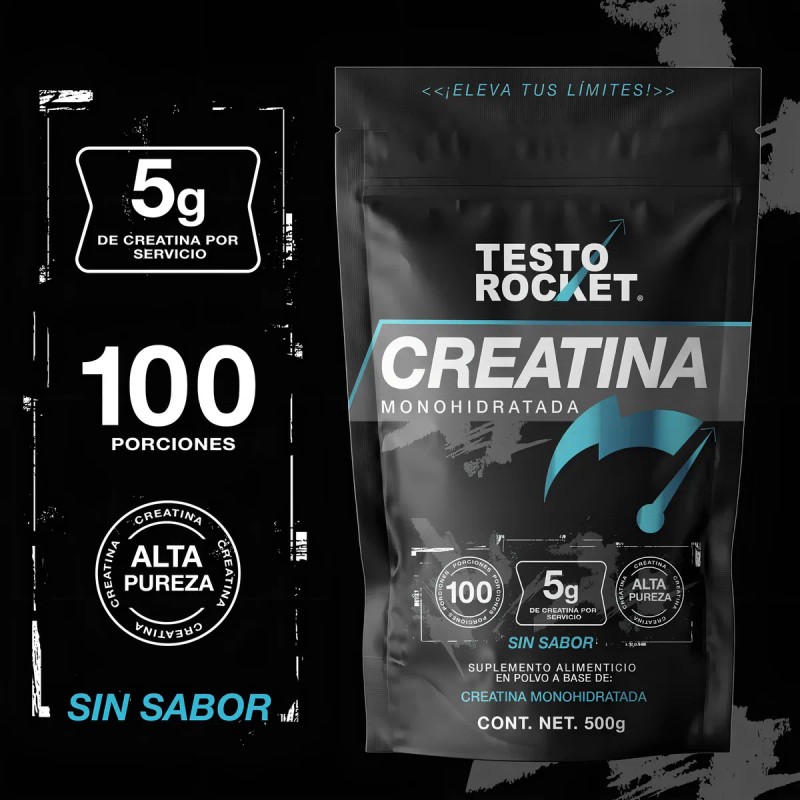 Creatina monohidratada micronizada 500g sin sabor Testo Rocket pre workout creatine 100 servicios pre entreno y alta pureza