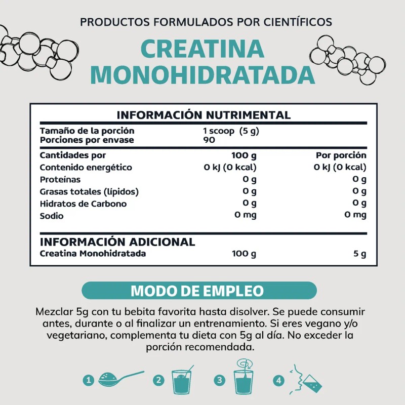 - Evaluamos los parámetros químicos más exigentes (Creatinina, DHT, DCD) para entregarte la creatina más pura del mercado.