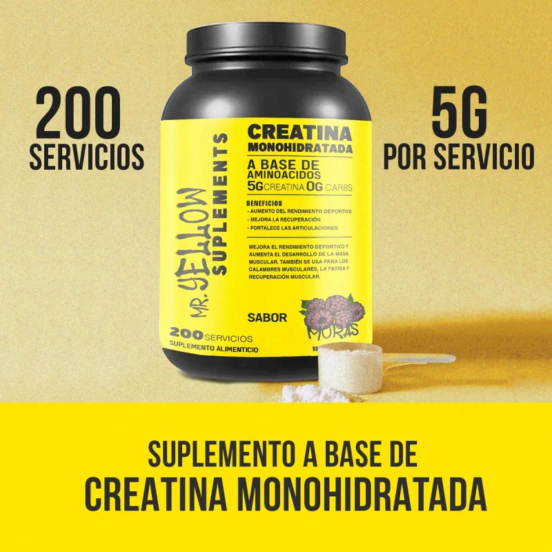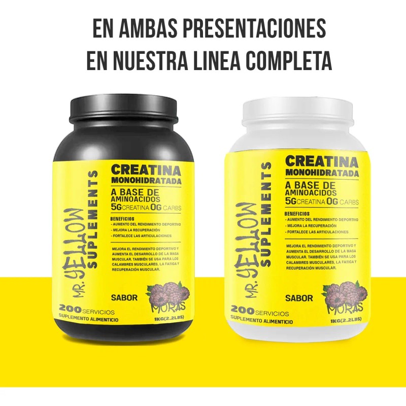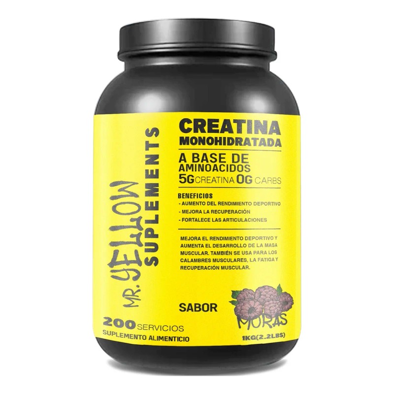Creatina Monohidratada Mr. Yellow Sabores 200 Servicios 1kg Moras