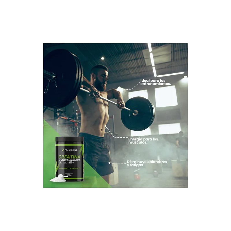 Maximiza tu Fuerza y Resistencia: Nuestra creatina monohidratada 100% pura de 450g está diseñada para deportistas serios, ideal para entrenamientos intensos.
