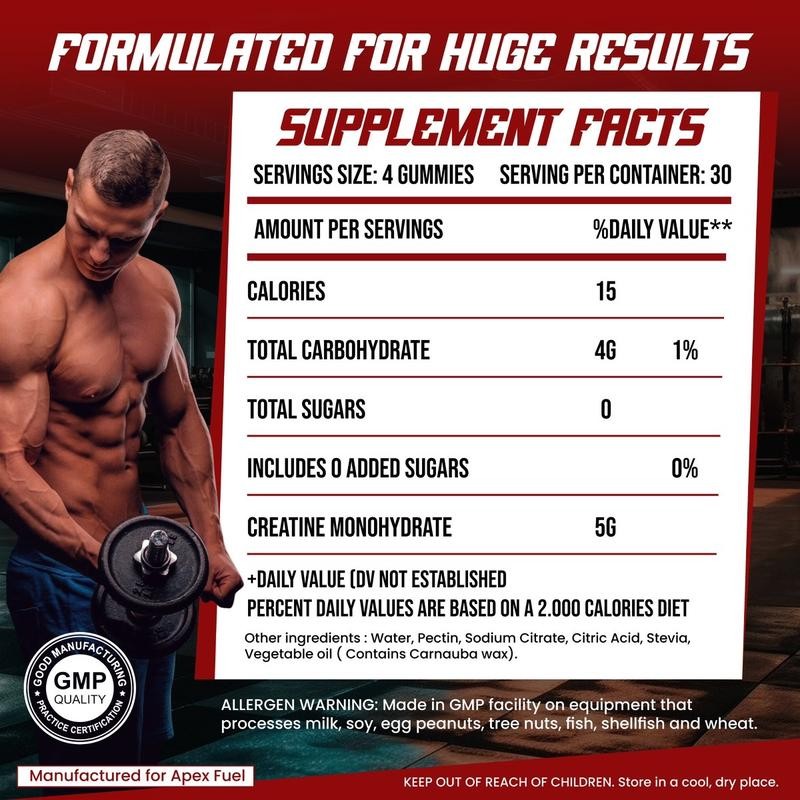 - Creatine-Infused Gummies 5g Strawberry, 30 servings fitness Dietary Supplement creatine monohydrate Edible chewable Muscle & energy support Nutrition