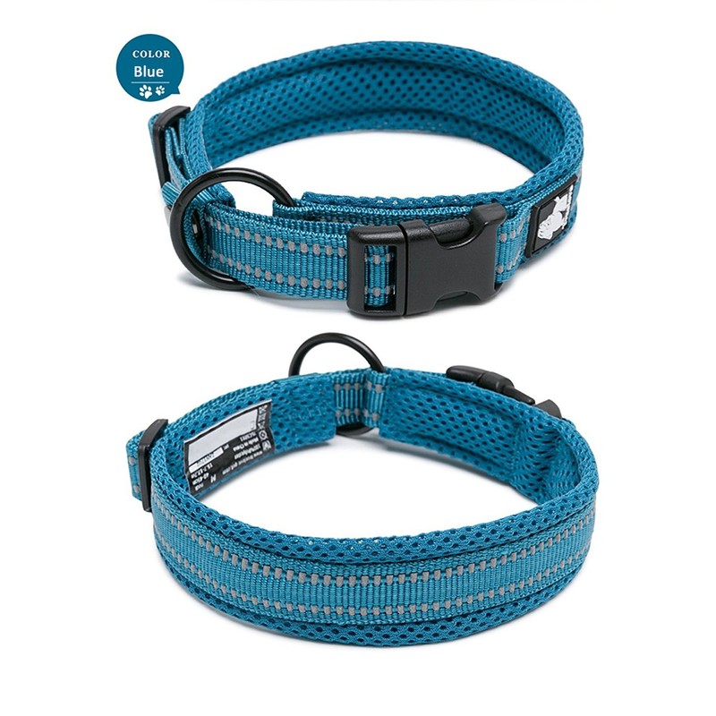 **Mesh Padded Nylon Pet Dog Collar Bulk** **Soft mesh padded** \--Thanks to the wide soft mesh padding , the nylon pet dog collar is comfortable and does not cause wear on the dog's fur or skin. **Reflective** \--Nylon webbing with reflective material ensure good visibility at night on the road. **Duraflex buckle** \--Duraflex buckle is lightweight and have large loading capacity which improve the tensile strength of this nylon pet dog collar. **leash attachment points** \--Leash attachment points: Zinc-alloy O-ring. **Easy to put on and put off** \--Easy and quick to put on, both dog and owner will get accustomed to the nylon pet dog collar in no time. **Size Guidance** \--Size XXS: 11"-11.8";--Size XS: 11.8"-13.8";--Size S: 13.8"-15.7"(35-40CM);--Size M: 15.7"-17.7"(40-45CM); --Size L: 17.7"-19.7"(45.-50CM); --Size XL: 19.7"-21.7"(50-55CM); --Size XXL: 21.7"-23.6"(55-60CM); --Size XXXL: 23.6"-25.6"(60-65CM). **Note** 1\. Measure your pet's neck with a tape, that would be better to set aside 0.7-1.1 inches(2-3cm) to be sure there is a enough room for your pet breath freely.2. Please be reminded that due to lighting effects, monitor's brightness and contrast settings etc, there could be a little difference in the color tone of the pictures and the actual item.