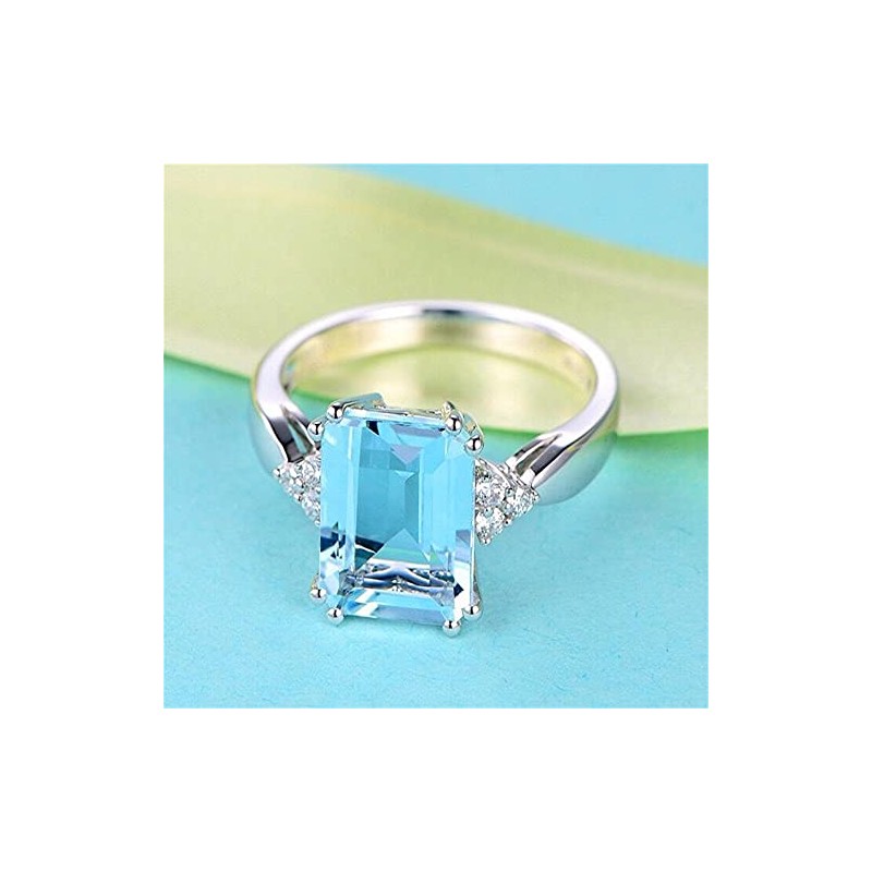 Creative 925 Sterling Silver Womens Rectangle Sapphire Ring Shiny 18K Square Blue Gemstone Ring CZ Zirconia Diamond Topaz Ring Eternity Engagement Wedding Band Promise Cocktail Ring ST.331 (6)