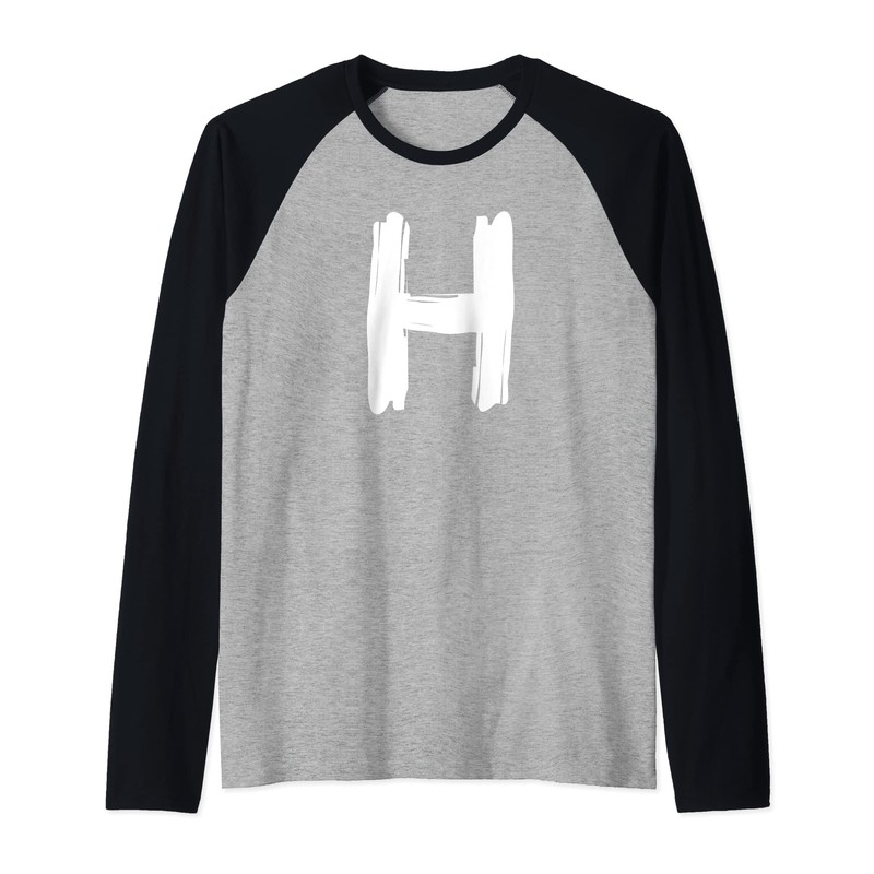 Creative Bold White Letter H - Design - Alphabet - Marker Raglan Baseball Tee