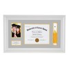 - WHITE GRADUATION KEEPSAKE FRAME: With grey matting and metallic gold accents; includes shadow box for tassel, and openings for photo and diploma