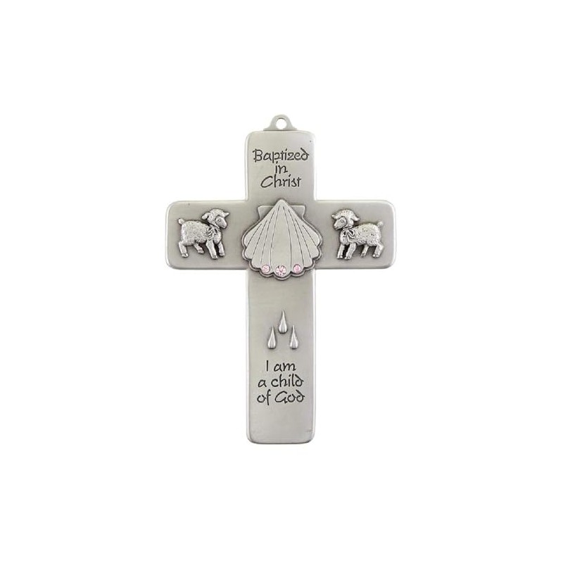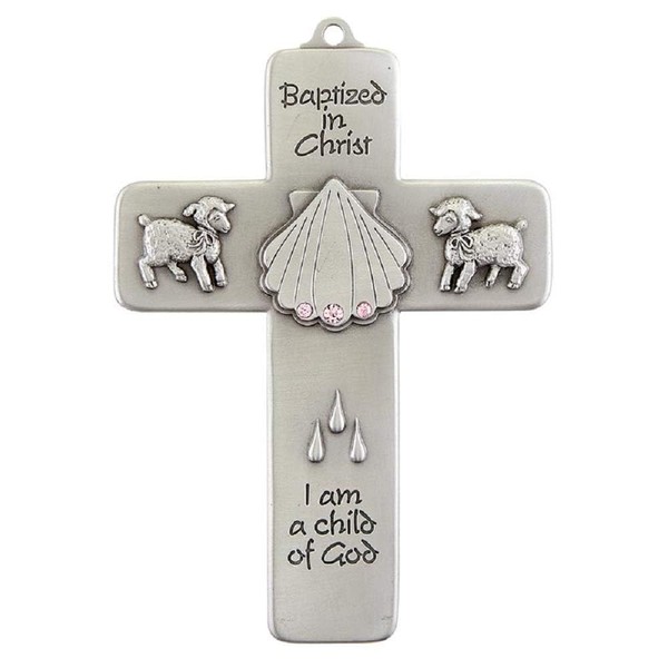 Creative Brands JC-3206-E Baptized in Christ Cross, 5-inch Height, Pewter and Crystal