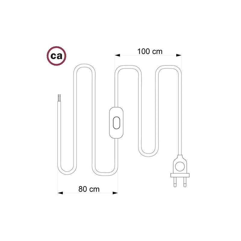 Cable length: 1.80 m (100 cm from plug to switch + 80 cm from switch to end of the cable) 2 x 0.75.