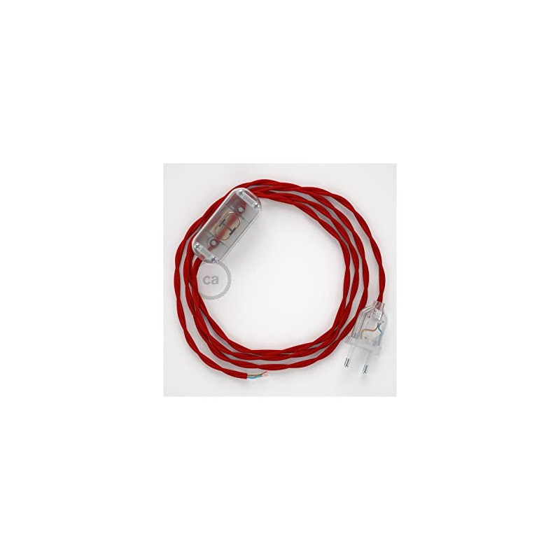 creative cables - Cable for table lamps TM09 red silk effect 1.80 m. Choose from three colours with switch and plug. - Transparent