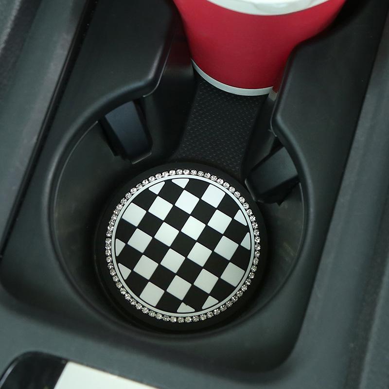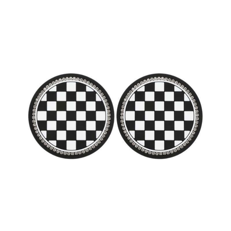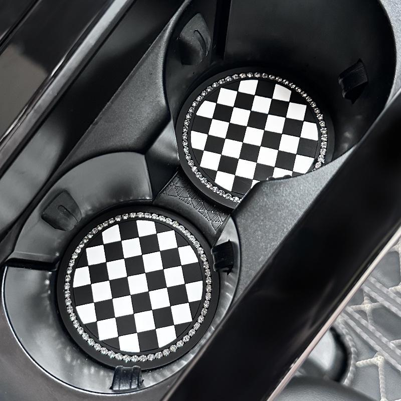 Creative Checkerboard Pattern Car Coaster, Anti-slip Car Cup Holder Coaster, Universal PVC Anti-slip Pad, Auto Interior Accessories Decorations