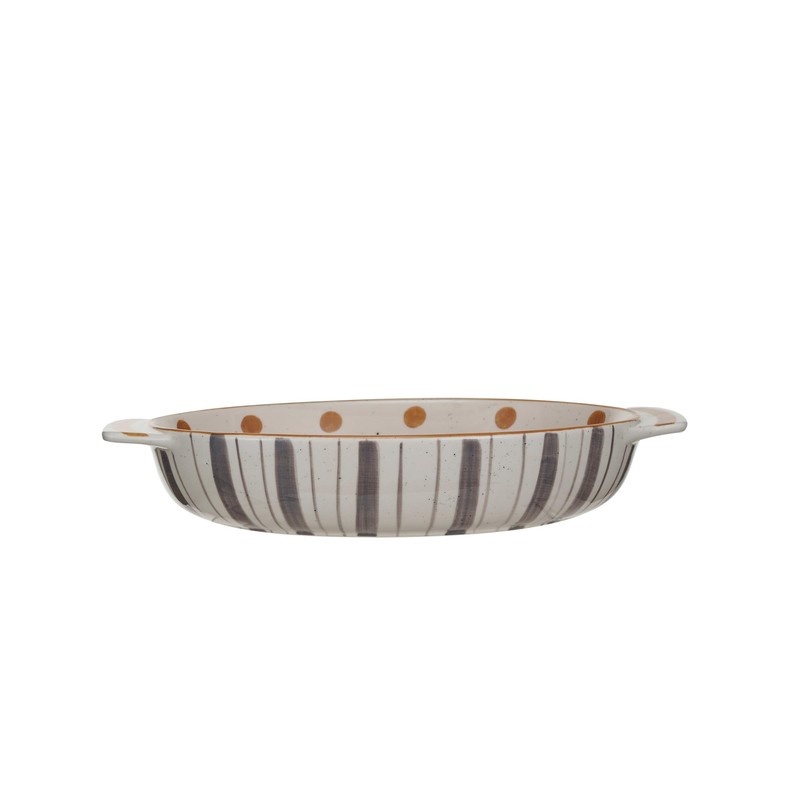 Creative Co-Op 1.75 Quart Stoneware Oval Baking Dish with Dot Pattern, Mustard and Grey