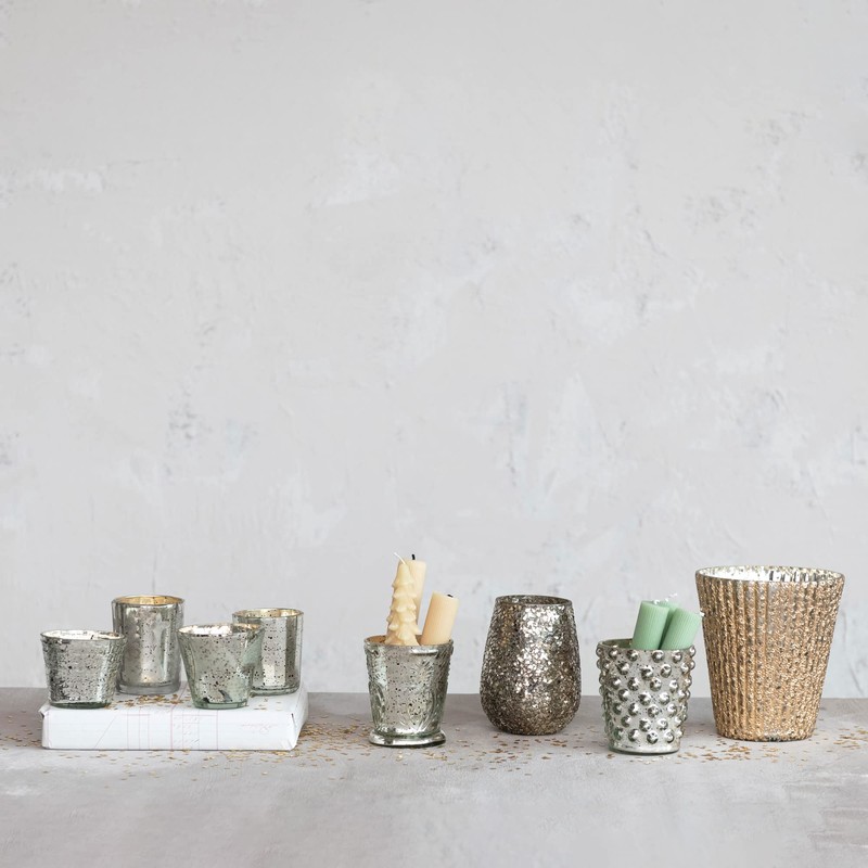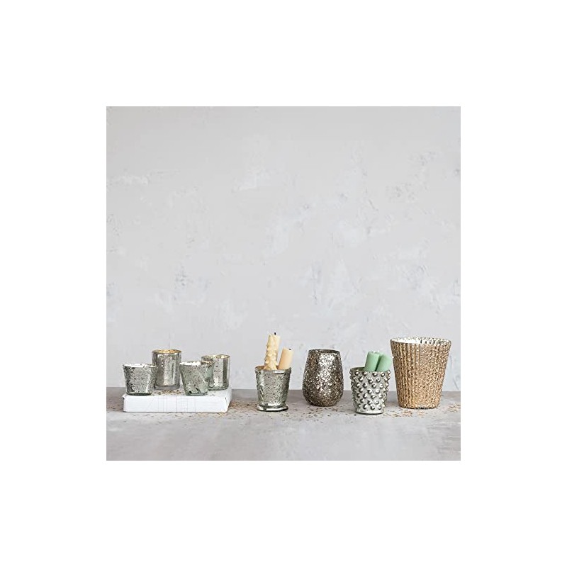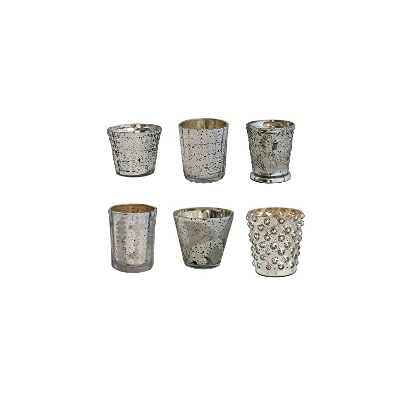 Creative Co-Op 2-1/2"H - 3-3/4"H Mercury Glass Votive Holders, Antique Silver Finish, 6 Styles, Set of 6