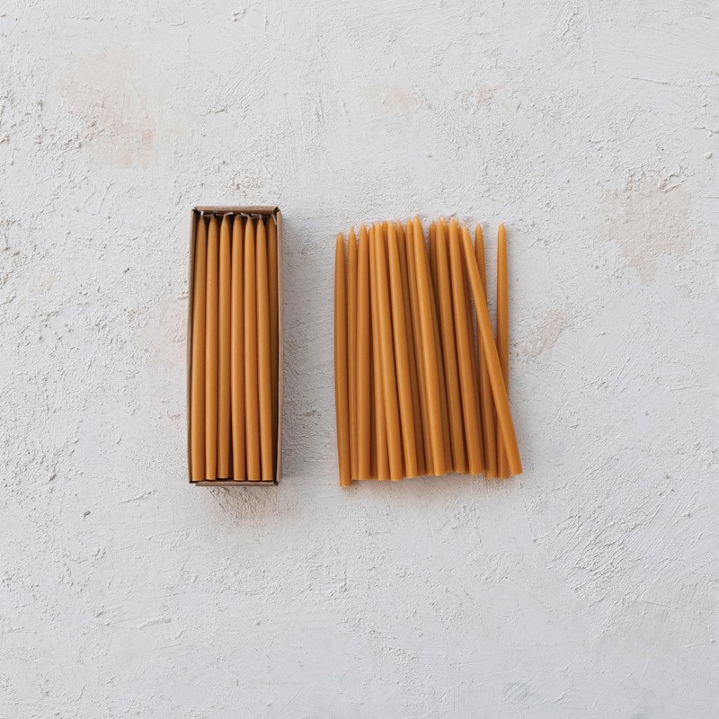 Creative Co-Op 24-Piece Unscented Thin Taper Candles in Box, Camel Color