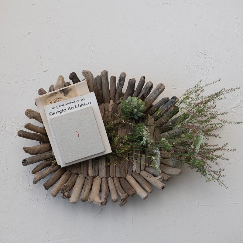 • This nature-inspired tray showcases intricately pieced driftwood in a natural finish