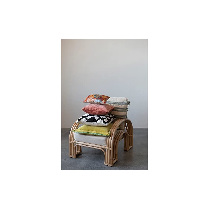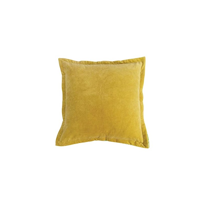 Creative Co-Op Cotton Velvet Palm Print Gusset Pillow, 22" L x 22" W x 2" H, Green