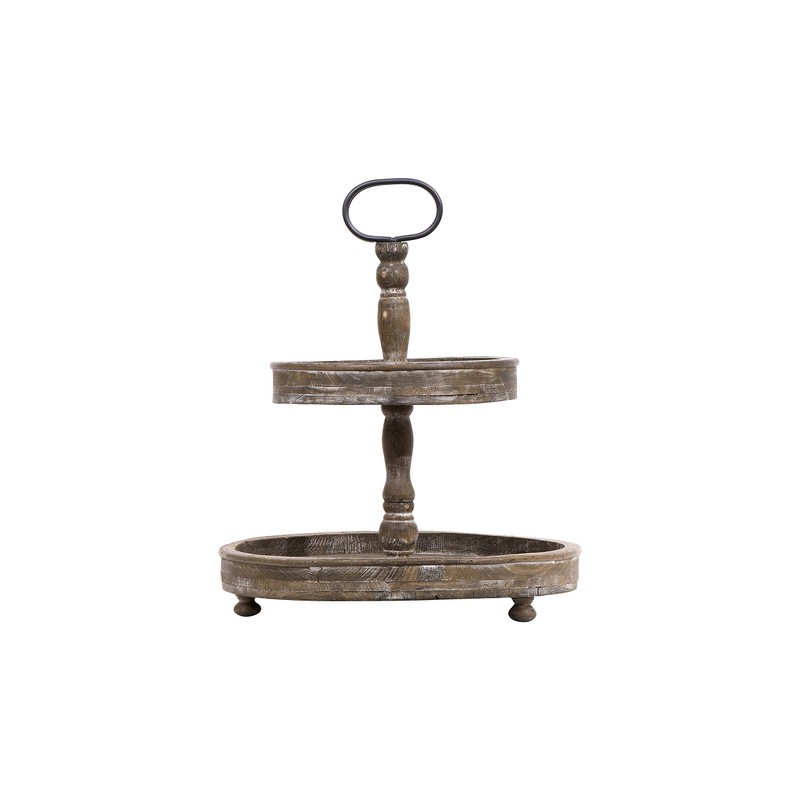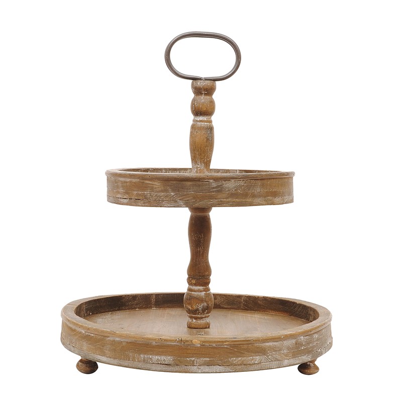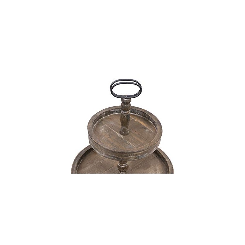 Creative Co-Op Distressed Brown Wood 2-Tier Tray with Metal Handle