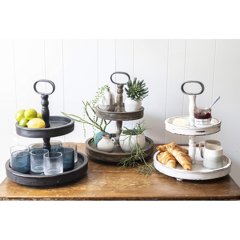 Add a fresh touch of dcor to the kitchen with this amazing 2-tier tray. Both trays allow ample space for displaying items. Fill it with spices and easily move to the area of the kitchen they are needed. It will also make a perfect centerpiece for the table. Place a colorful placemat under it and fill the bottom tray with decorative greenery over a row of battery operated lights. Fill the top tray with salt, pepper, sugar and creamer.