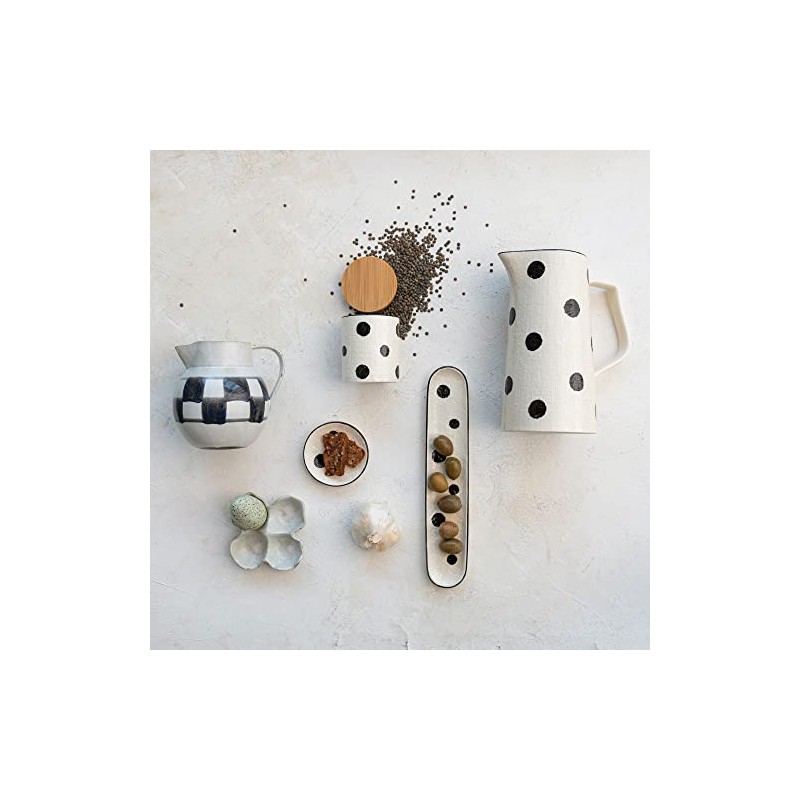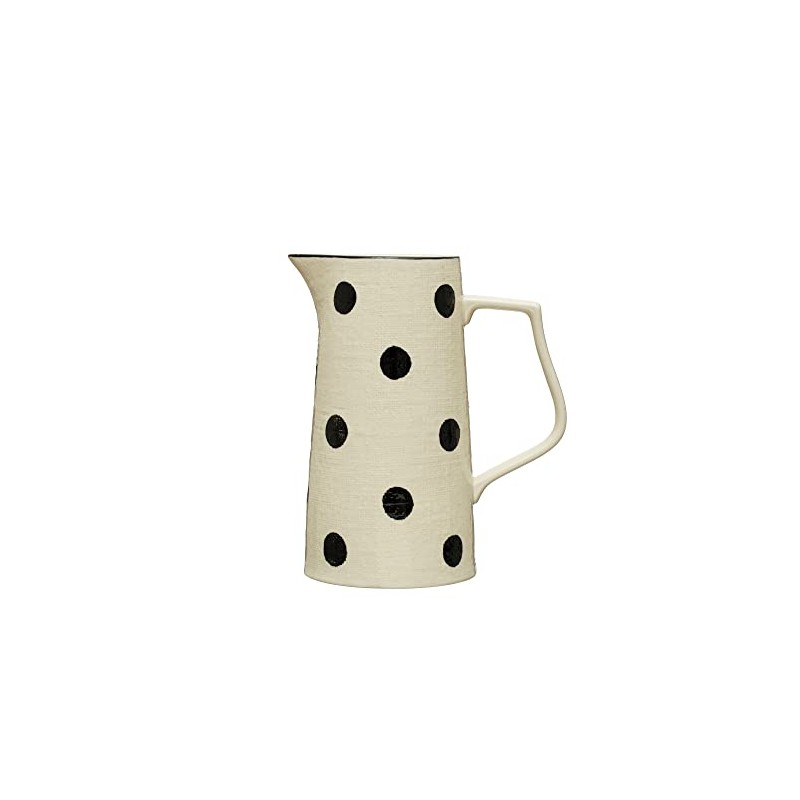 Creative Co-Op Farmhouse Stoneware Painted Polka Dots, Ivory and Black Pitcher
