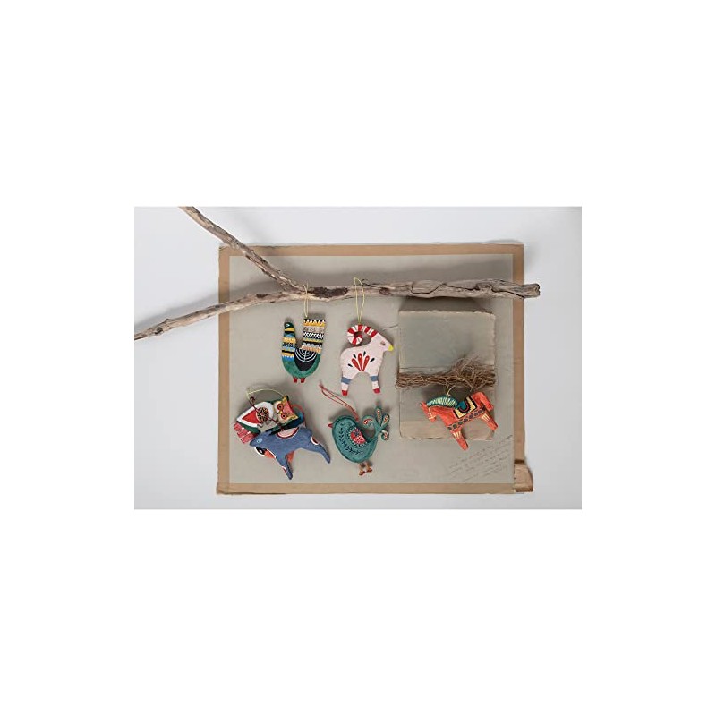Creative Co-Op Hand-Painted Paper Mache Bird Ornament, Multicolor