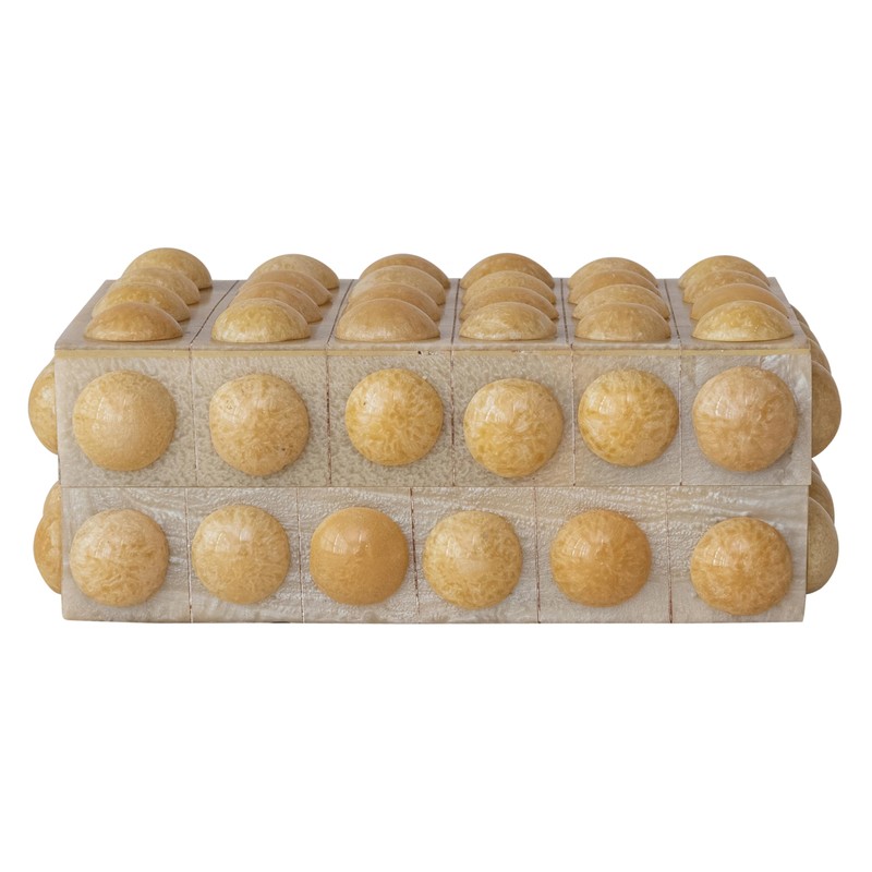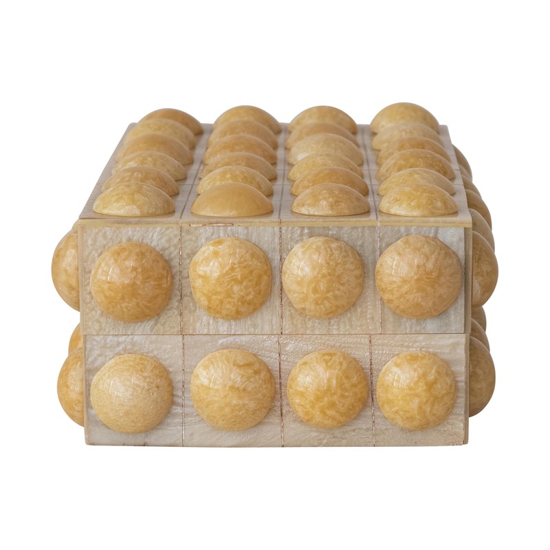 Creative Co-Op Handmade Marbled Resin Bobbin Box, Cream