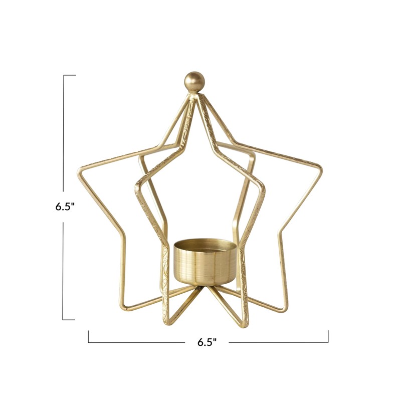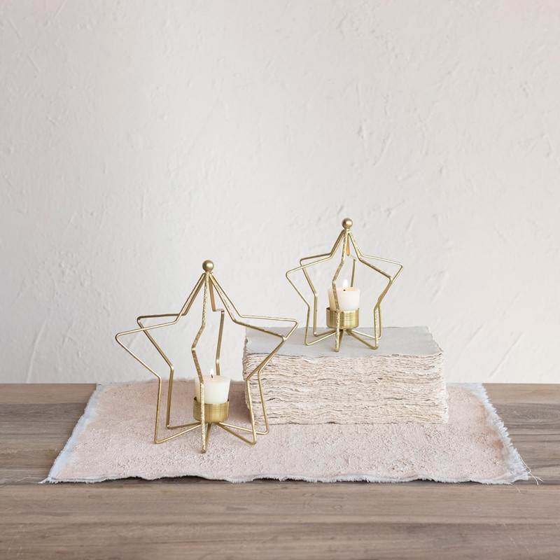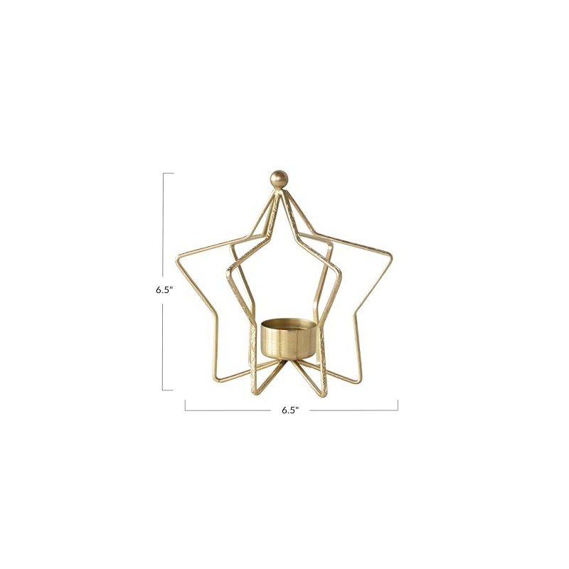 Creative Co-Op Metal Star Shaped Tealight Holder, Gold Finish