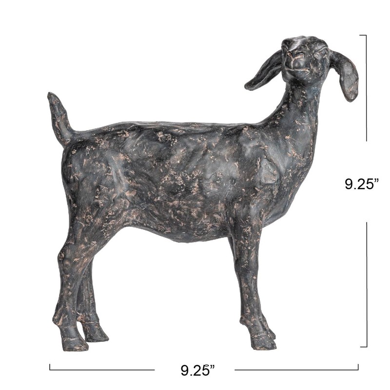 • A charming and whimsical accent decor that features a resin standing goat with a cast iron finish