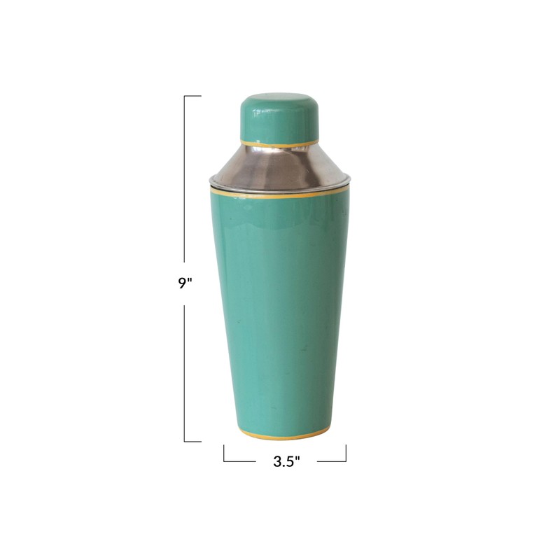 Creative Co-Op Round Enameled Stainless Steel Cocktail Shaker with Colored Edge, Green and Yellow, Medium, Multi
