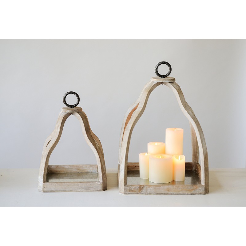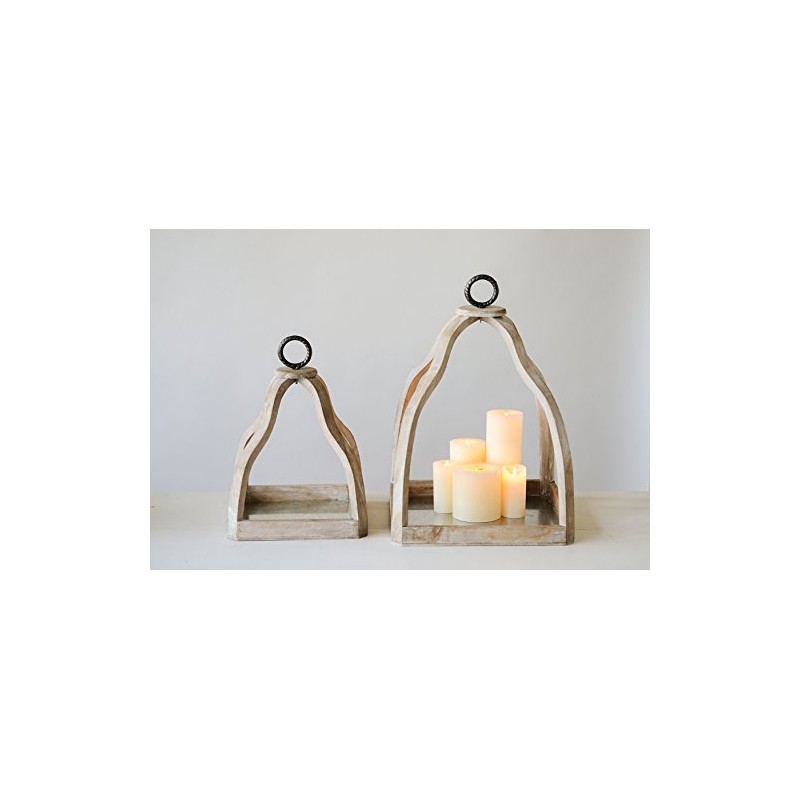Creative Co-Op Set of 2 Decorative Wood & Metal Trays
