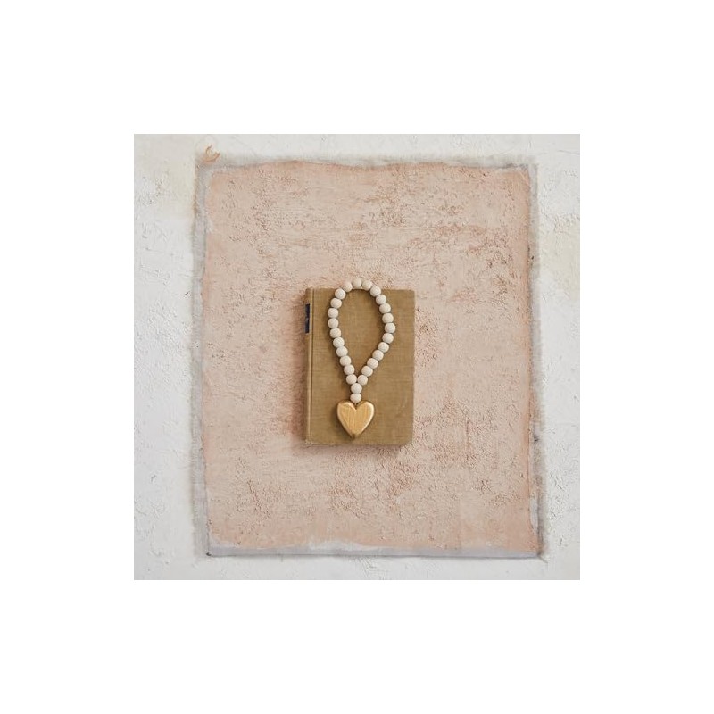 Creative Co-Op Wood Bead Garland with Heart, Natural and Gold