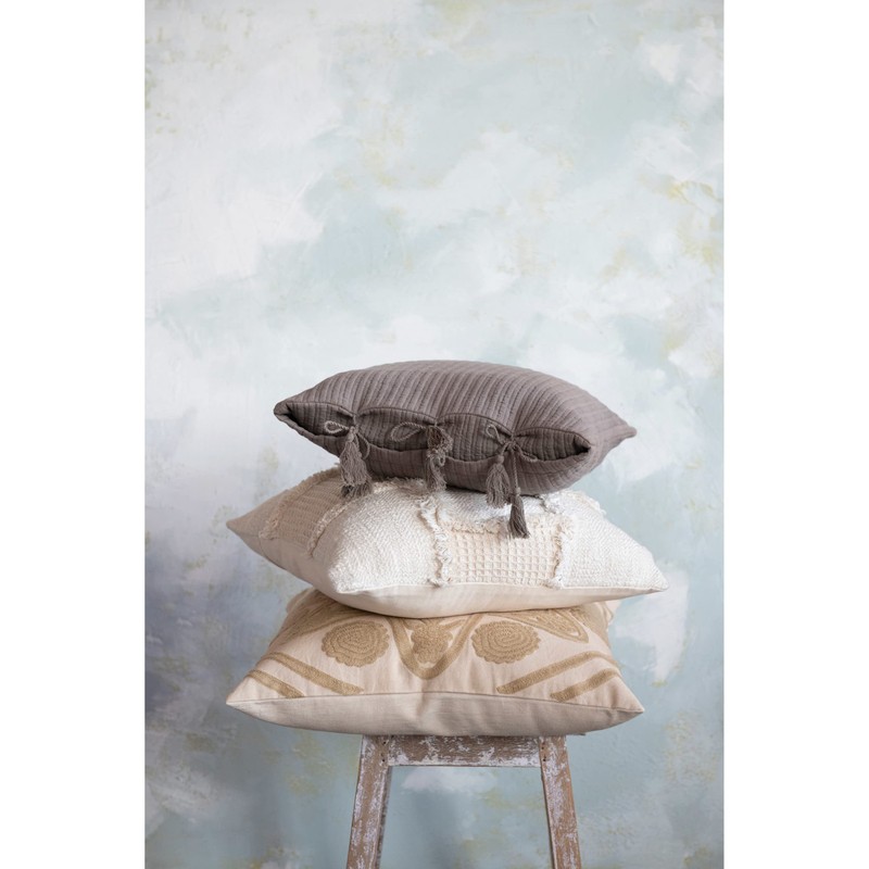 Creative Co-Op Woven Cotton and Wool Patchwork Frayed Edges Pillow, 18" L x 18" W x 2" H, Cream