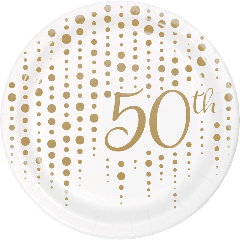 Creative Converting Sparkle and Shine Gold - Platos de postre para 50 aniversario, 7 pulgadas