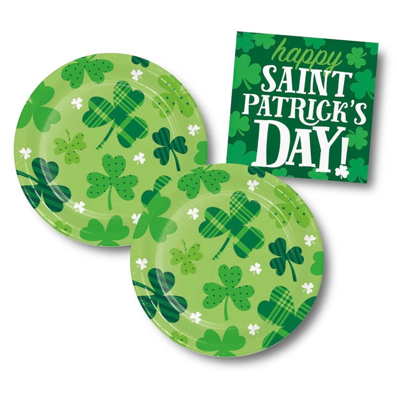 Creative Converting St Patricks Day Paper Plates, Napkins, Shamrock Party Supplies, Irish Birthday, Disposable Tableware (32 Piece)