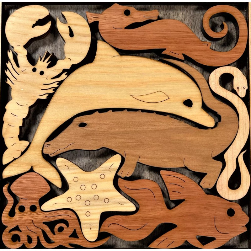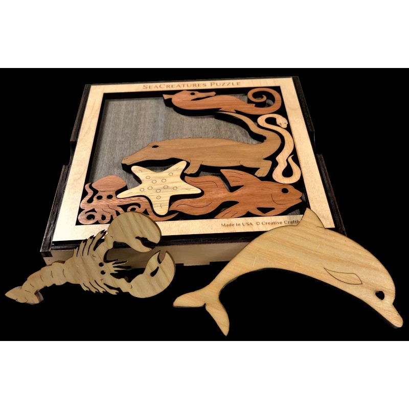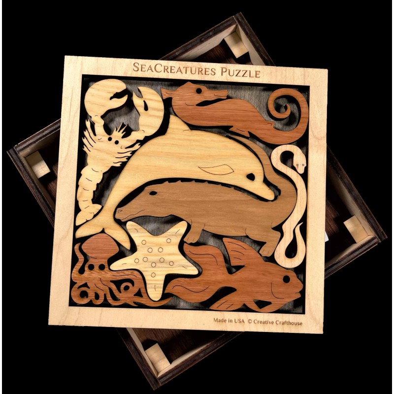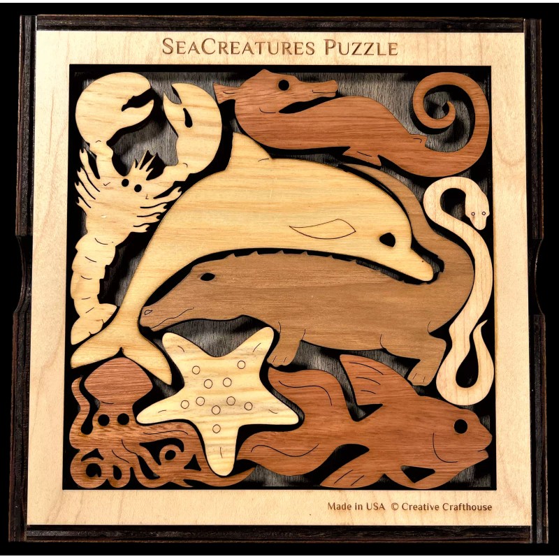 Creative Crafthouse Sea Creatures wood brain teaser puzzle - unique design made USA - hardwood SeaC