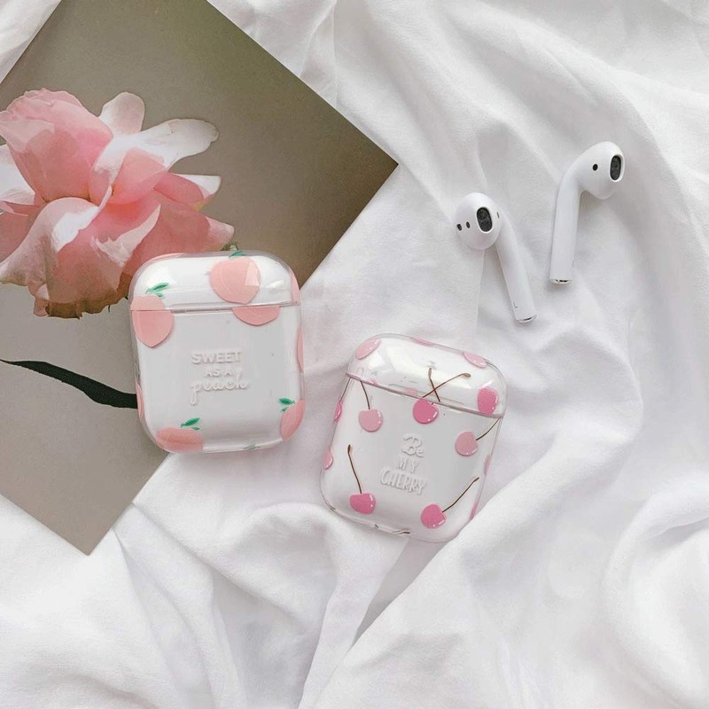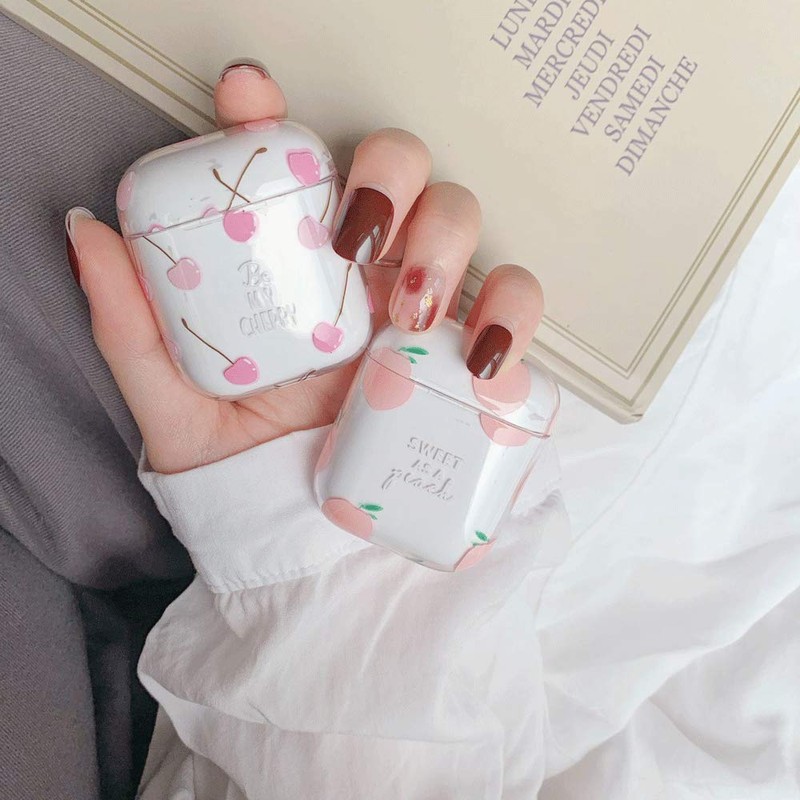 Creative Cute Fresh Juicy Peach Case Compatible with Airpods 1 & 2, Sweet Fruits Carrying AirPods Accessories Hard Plastic Shockproof Protective Case